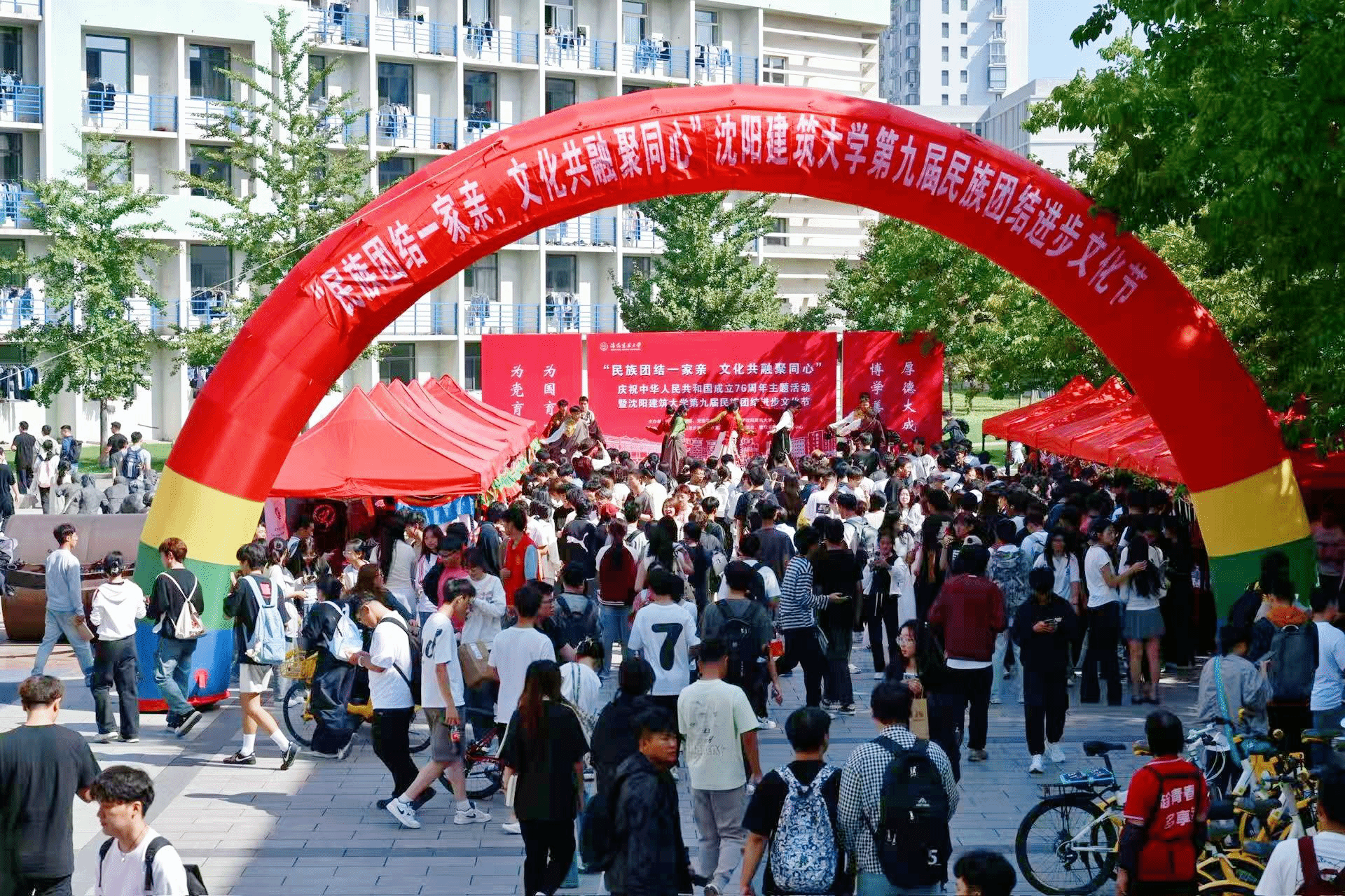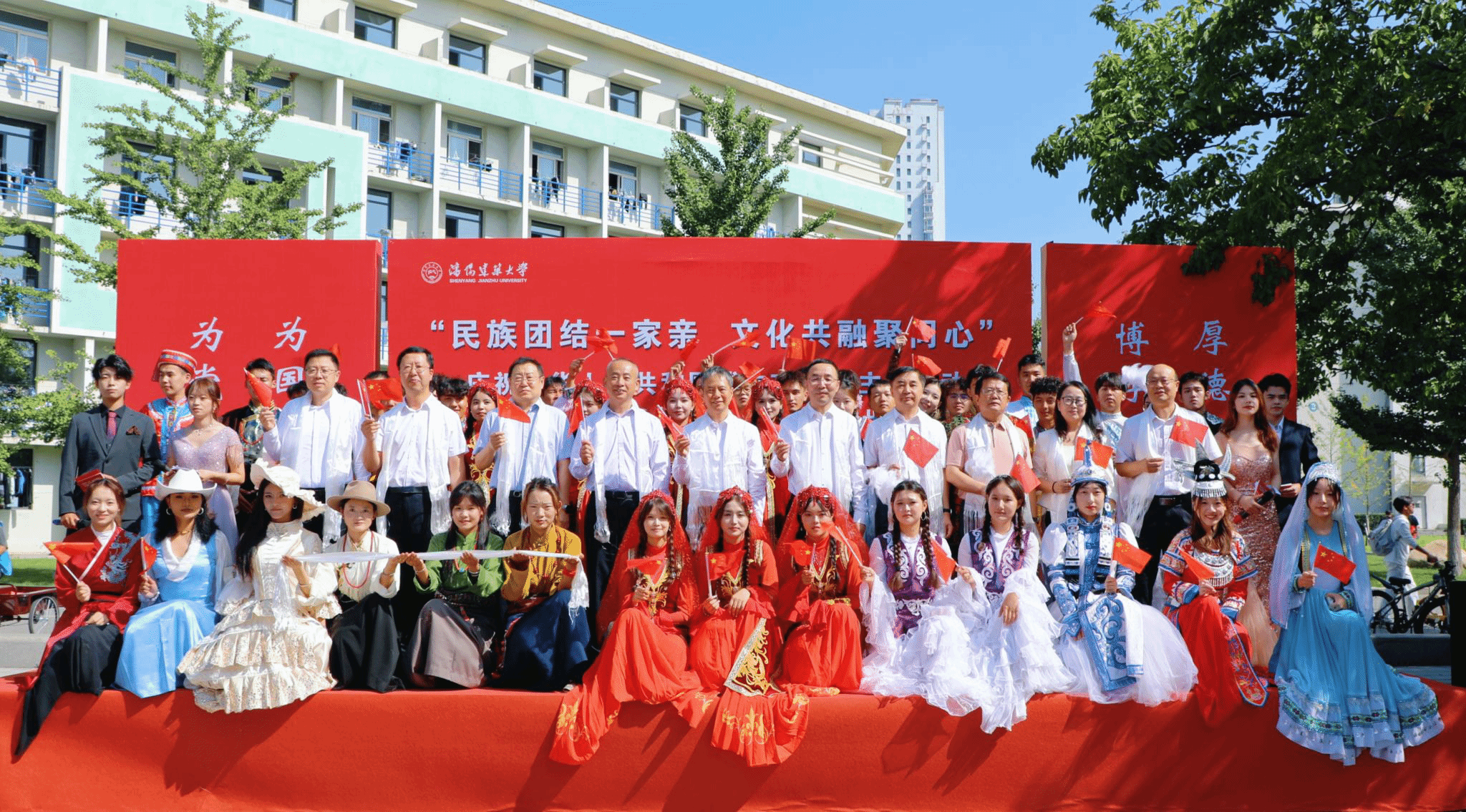 9月25日上午,习近平总书记在乌鲁木齐市出席新疆维吾尔自治区成立70周年庆祝大会,同新疆各族各界干部群众代表一道,热烈庆祝新疆维吾尔自治区成立70周年。值此庆祝新疆维吾尔自治区成立70周年之际,我校在铁石广场举办“民族团结一家亲,文化共融聚同心”庆祝中华人民共和国成立76周年主题活动暨第九届民族团结进步文化节。校领导郭长义、张佩栋、何通海、夏柏树、王凤池、栾方军,党委常委肖阳、林慧,校长助理吕石磊出席活动。
